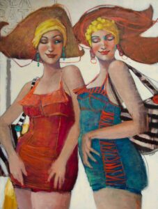 Around 2006 I discovered the vibrant world of acrylics, and with it, a completely new direction. The shift was dramatic; away from traditional landscapes and into bold, stylized abstraction. From landscapes to people via a riot of colour and form.